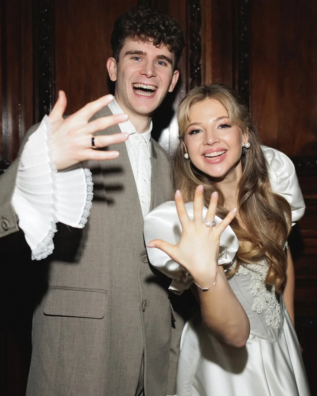 Артур Бабич поддержал общий стиль, выбрав элегантный серый костюм, дополненный белой рубашкой с кружевными манжетами. Этот штрих добавил образу индивидуальности и подчеркнул атмосферу события — немного сказочную, но при этом абсолютно искреннюю.