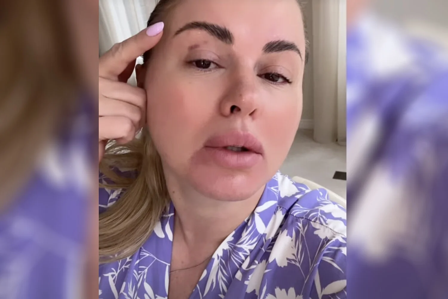 На свежем видео в соцсетях 44-летняя артистка появляется с красными пятнами под глазом, но сразу же спешит развеять слухи: