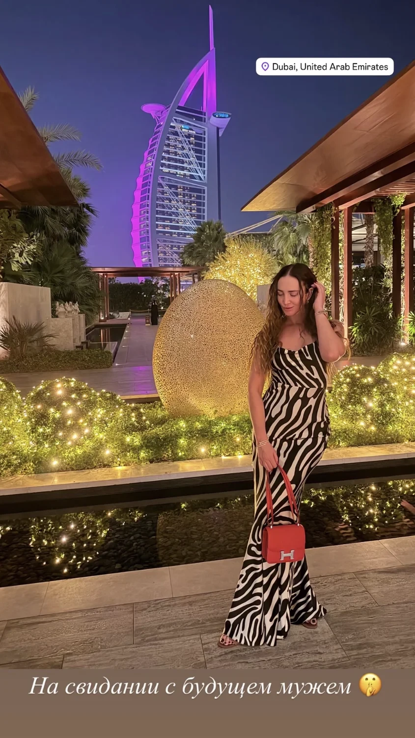 Отдыхающая в Эмиратах звезда опубликовала в Stories кадр, мгновенно разлетевшийся по фан-аккаунтам. На фото Бузова позирует в эффектном макси-платье с зебровым принтом — смелом, но элегантном. Образ завершает миниатюрная красная сумка, аккуратный акцент, который добавляет наряду голливудского шика. Волосы уложены мягкими волнами, макияж — сдержанный, с акцентом на сияющую кожу. Все говорит о том, что это не просто выход к ужину, а особенный вечер.