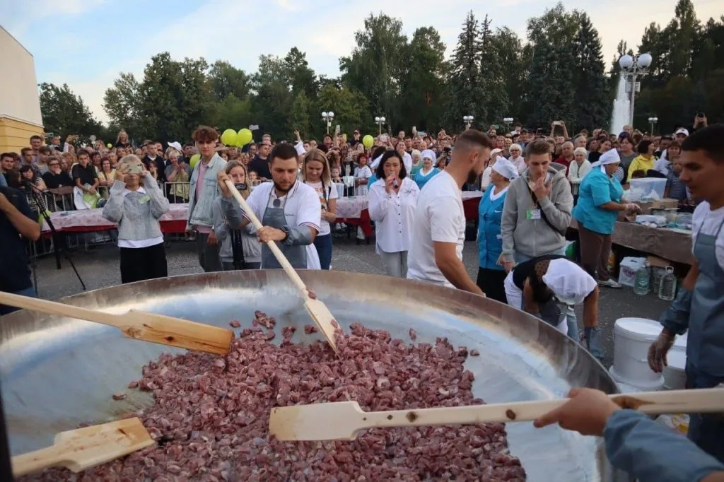 В день 65-летия города, который объединили с празднованием дня знаний и отмечали с 1 по 3 сентября, решено было приготовить простое блюдо. Однако сделать это нужно было в крупных масштабах на сковороде весом 450 кг.