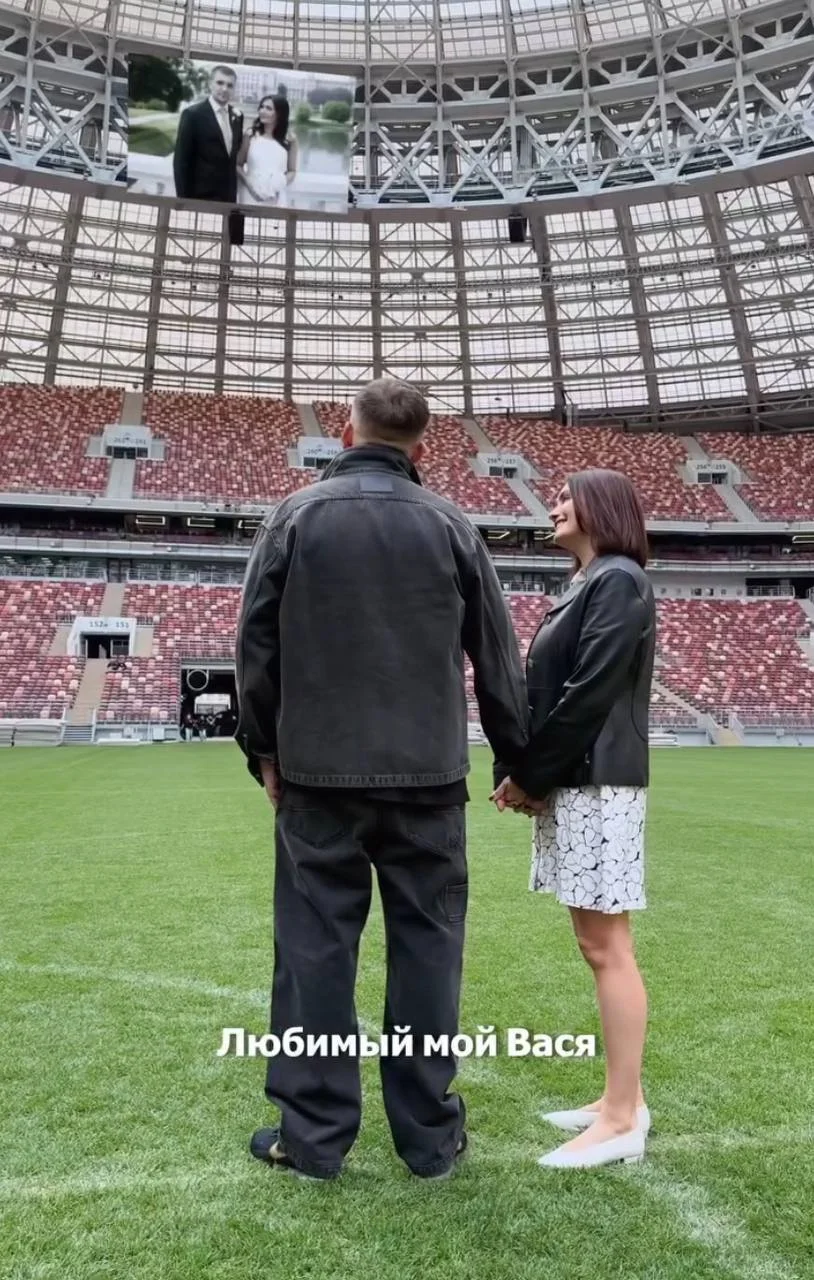 Баста с женой Еленой, фото: соцсетиЕлена Пинская-Вакуленко креативно отметила 16-ю годовщину свадьбы с рэпером — на весь стадион и от всей души
