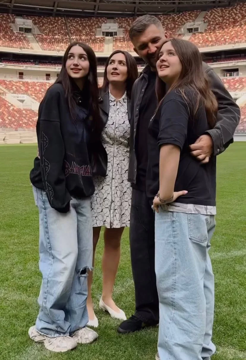 Финальный аккорд — на поле выбежали их дочери, 15-летняя Мария и 12-летняя Василиса. Тронутое до глубины души семейное трио обнялось прямо на газоне легендарного стадиона.