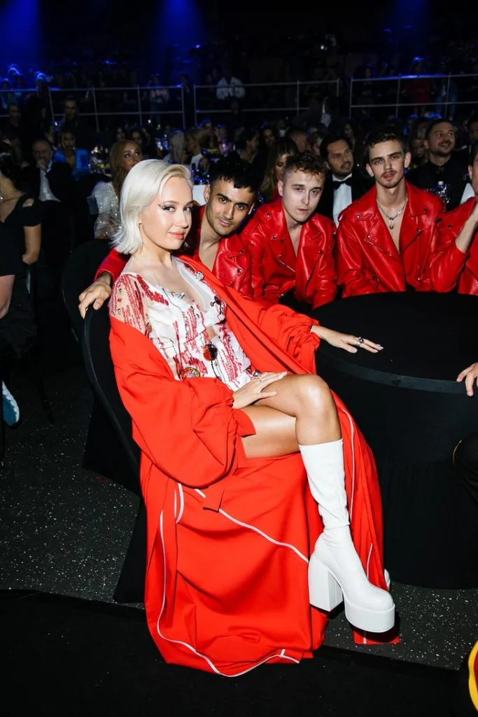 Были и одежды от наших кутюрье, в том числе Оля Серябкина в платье с вырезом от Валентина Юдашкина, а в целом образы наших артистов дышали «Русским артом».