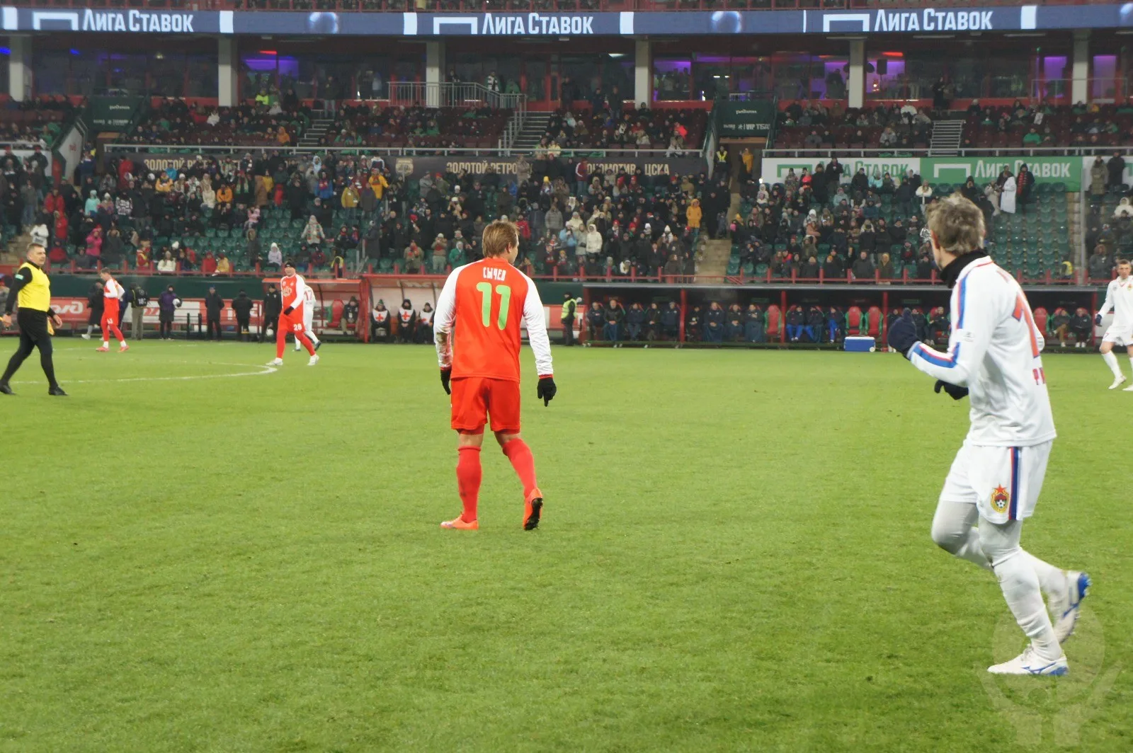 19 ноября в Москве на "РЖД-Арене" прошло грандиозное событие в мире спорта и культуры. Можно было бы назвать его ретро-фестивалем! Любители футбола собрались в большом количестве (по данным "РЖД-Арены" на трибунах присутствовало более 11 тысяч человек) для просмотра ретро-матча Локомотив - ЦСКА! Идея РФС состояла в том, чтобы повторить золотой матч 2002 года. Футболисты откликнулись на эту идею с воодушевлением, и составы команд были идентичны с теми самыми из 2002 года практически в полном объеме. Юрий Семин и Валерий Газзаев были главными тренерами команд в этом матче памяти.