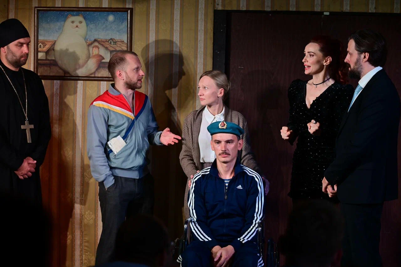 Спектакль, наполненный фирменнымиаллегориями и тонкой иронией, переходящей в лиризм, начинается с празднования дня рождения героя афганской войны Ивана Костромитина, апродолжится неожиданным подведением жизненных итогов для каждого из героев. Олигарх и священник, спившийся поэт и модель, тоскующий эмигрант и школьная учительница – герои пьесы абсолютно разные, но они – части единого целого – одной эпохи, страны и общества.